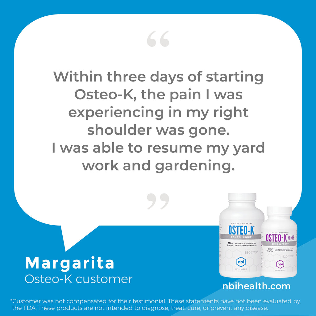 To meet the unique nutritional needs of different people, NBI has created two versions of Osteo-K, the original Osteo-K® formula and Osteo-K Minis. If you're not sure which product is right for you, click here.
